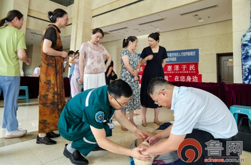 急诊科主任刘宝鹏采用理论讲解与实际操作相结合的方式,围绕心肺复苏、热射病防治等急救知识展开现场教学,深入浅出地讲解了急救的基本原则和操作要点,让复杂的急救知识变得简单易懂。