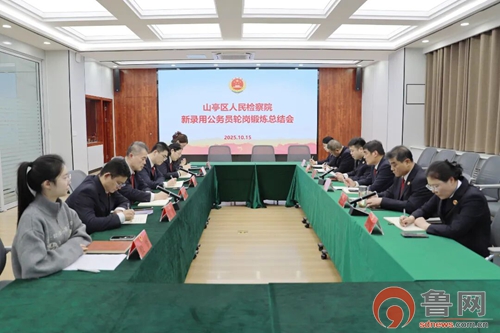 鲁网10月16日讯(记者 杜方奇)为全面检验新录用公务员轮岗锻炼成效,进一步做强“精优团队”,10月15日,枣庄市山亭区人民检察院召开2025年度新录用公务员轮岗锻炼总结会。党组书记、检察长鲁大同出席会议并讲话,党组成员、机关党委书记尹亦凡主持会议,院领导、轮岗部门相关负责人、2025年度新录用公务员参加会议。