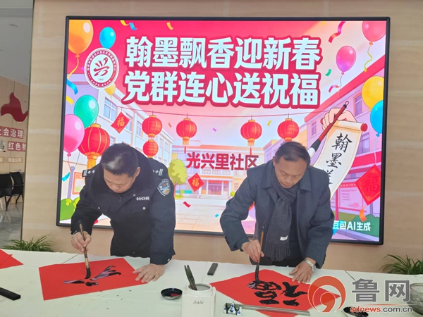 鲁网2月12日讯 新春将至,年味渐浓。为传承中华优秀传统文化,营造喜庆祥和的节日氛围,2月9日,垎塔埠街道光兴里社区开展“翰墨飘香迎新春 党群连心送祝福”写春联送祝福活动,邀请辖区书法爱好者挥毫泼墨,为居民送上满满的新春祝福。