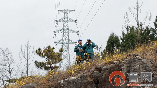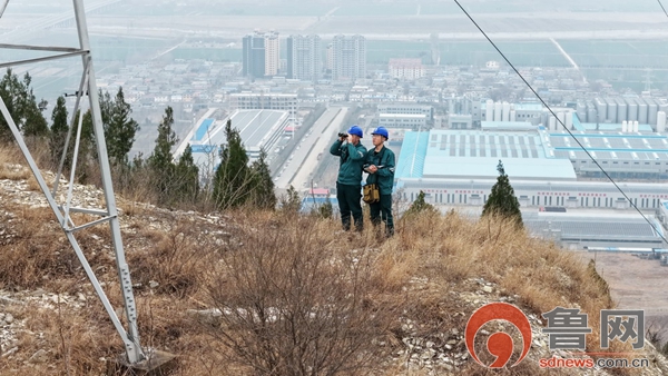 2月28日,枣庄供电公司员工冯绪刚、郑君超特巡穿行于薛城区千山头的220千伏建夏线,与视频远程监控协同,确保山下青啤智能制造产业园运行开发与电网通道双平安。