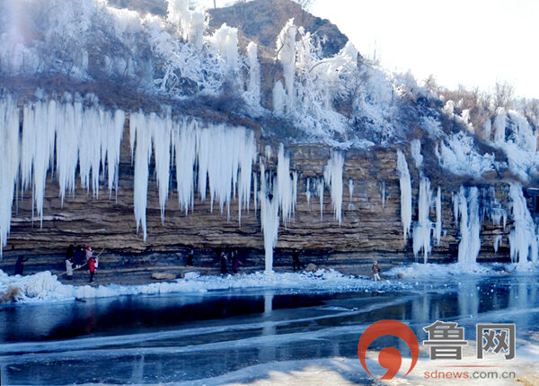 12月22日,枣庄市公安局山亭分局山城派出所民警利用手中的话筒,隔着一条河流,温馨提示正在观赏冰挂的游客注意人身安全。