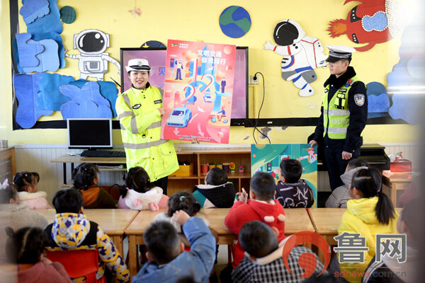 近日,枣庄市公安局山亭分局交警大队组织民辅警走进辖区金苹果幼儿园开展交通安全宣讲活动。